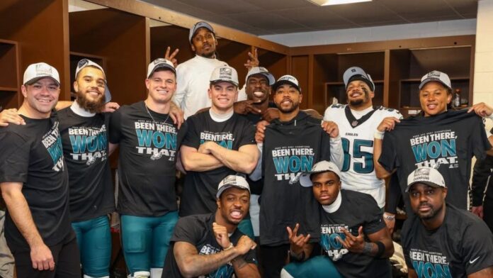 He celebrated with a playful nod to WWE icon John Cena, mimicking the Five Knuckle Shuffle on teammate Quinyon Mitchell before mock-pinning him as Eagles players surrounded them and counted to three—an instant crossover moment that caught fans’ attention.
